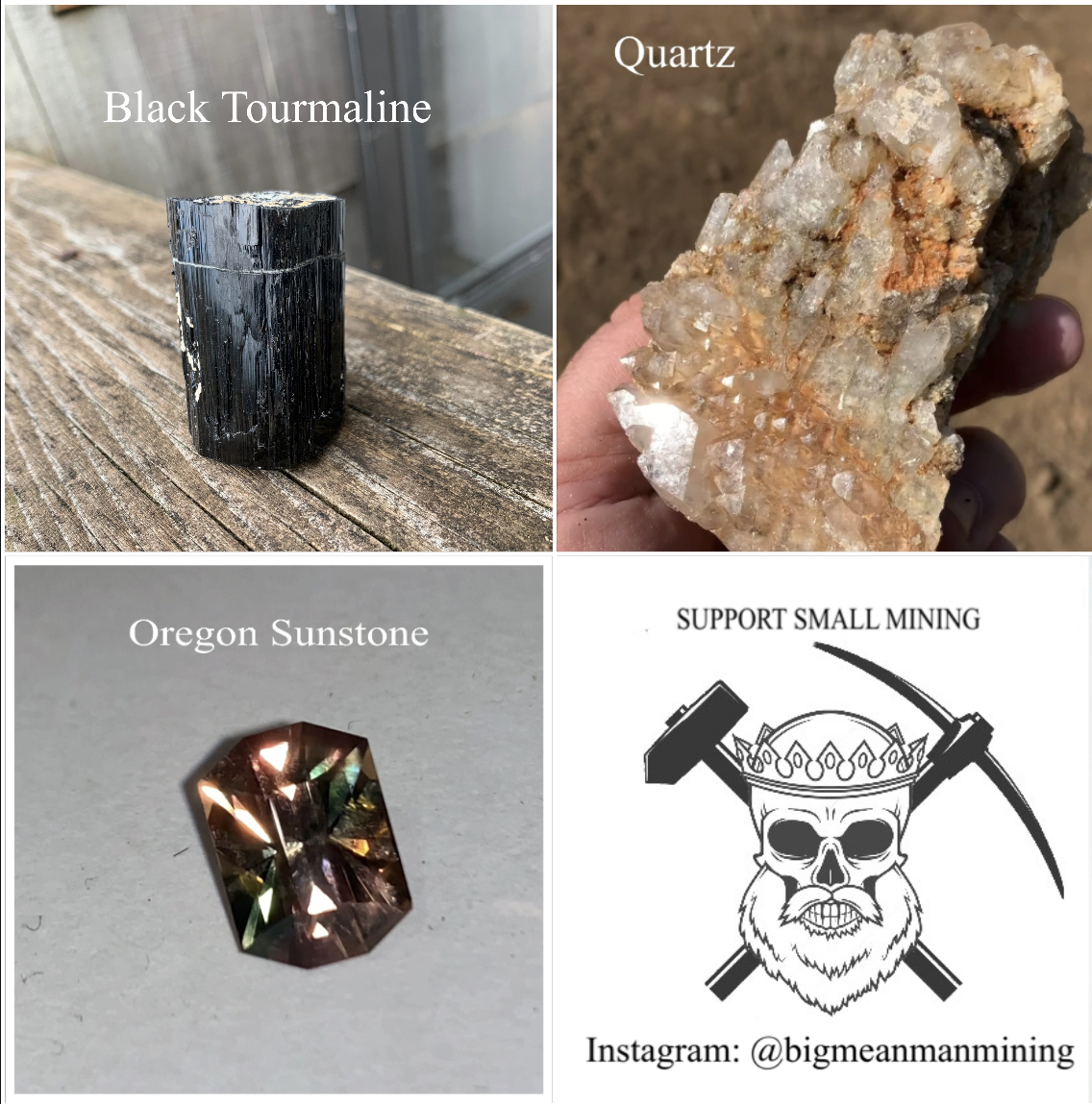In 2012 I began poking around off trail with my kids, ultimately finding my very first crystal. Excited I went home and looked up how to file a mining claim. Realizing the spot I had been colleting on was already claimed I hopped in my rig, went to the address on file and returned the crystals I had found. The old time miner looked at them, handed them back and said thank you for being honest. This was how I met the Master faceter and well known miner Phil Osborne. He mentored me and introduced me to various forms of mining, above and below ground. Many thanks to the legend. We continued on to locating more locations and mining quartz, garnets, schorl, foitite, aquamarine, amethyst, smoky quartz, calcite and Oregon Sunstone.